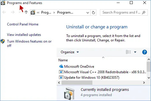 ● Open Control Panel and click on Programs and Features.